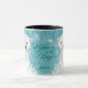 This pretty winter mug features a beautiful white polar bear against a blue sky with white snowflakes. Fluffy white clouds surround the bear at the bottom. The image is printed on two sides of the mug, with darker teal script at the middle that says "Believe in the Magic". Your name or other text is at the bottom.