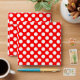 White polka dotted pattern on the outside of a coloured envelope. You can use any of the colours in the system to coordinate with the polka dots.