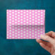 White polka dotted pattern on the outside of a coloured envelope. You can use any of the colours in the system to coordinate with the polka dots.