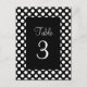 White polka dot pattern on black with room for a table number. You can customize and erase the word "Table" and centre the number.