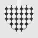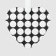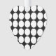 Bold white polka dots on a black background form a distinctive geometric pattern.