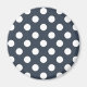 White polka dots on blue-grey magnet
