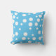 White polka dots in various sizes are printed on light blue on one side of the pillow, and on a darker shade of blue on the reverse side.