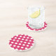White polka dots on cerise coaster