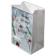 White Poodle in a Santa hat outside in a snowy background with candy canes and holiday decorations dog lovers Christmas holiday gift bag