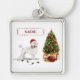 White Poodle Funny Christmas Dog with Tree Keychain
