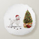 White Poodle Funny Christmas Dog with Tree Round Pillow