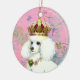 Beautiful white poodle wearing a golden crown. In the background are hummingbirds and scrolls. Pretty pastel design by Greer. If you need help with personalizing contact Greer at greerdesign@aol.