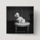 White poodle sitting on stool (B&W). Copyright: George Marks