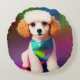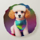 White Poodle with Cream Ears on Rainbow Sparkle Round Pillow