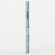 Cute White Poodles Pattern with Bows and Hearts on Delicate Swirl Pattern a Soft Blue Background Phone Case with Custom Name and Monogram.