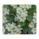 Chop and dice your food safely on this small size, decorative, glass cutting board that features the photo image of small, white Primroses with yellow centres, otherwise known as Primula vulgaris. The perfect size for chopping up small fruits and vegetables, cheeses, etc.