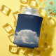 Photo of a white puffy cloud over a large river. The sky is very blue.