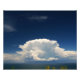 Photo of a white puffy cloud over a large river. The sky is very blue.