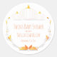 Stickers with a white pumpkin-themed, twins baby shower design in white and orange, autumn tones. All of the words are customizable