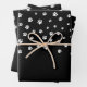 Cute cartoon paw print drawing. Black and white custom wrapping paper sheets.
