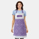 White and purple damask pattern with white scalloped borders apron. On the upper and the bottom parts of the apron there are white bands with scalloped edges. You can personalize it with your name.