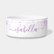 A stylish white background, decorated with purple faux glitter dust. Personalize and add your name written with a trendy hand lettered style script with swashes.