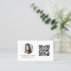 White QR Code Photo Monogram Minimalist Business Card