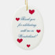 Oval ceramic ornament with a vintage Alice in Wonderland image of the White Rabbit in full regalia surrounded by whimsical red hearts. The back has the same red hearts and customizable text that reads “Thank you for celebrating with me in Wonderland!" See the entire Wonderland Ornament collection in the PARTY FAVORS section.