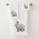 Cute white rabbit and apple flowers on white Bath Towel Set. Bunny only on one side. Only flowers are bicycle. Rabbits symbolize longevity, abundance and good fortune.