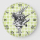 Green and white checked background with vintage illustration of the illustrious White Rabbit in his official garb as part of the Queen of Heart's court.