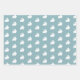 Adorable set of three wrapping papers with a pattern of white bunnies over a background of teal, pink and yellow pastel colours.
