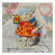 The Classic White Rabbit from Alice in Wonderland - Alice's Adventures in Wonderland features the white rabbit. This classic image of the white rabbit is from the original book, showing the rabbit blowing a horn, wearing a uniform of red hearts. The white rabbit is seen throughout the Alice in Wonderland story, from the rabbit hole, to the Mad Tea Party with the Mad Hatter. The alice in wonderland collage is a beautiful image for party invitations and gifts. Written by Lewis Caroll in 1865, Alice falls down the rabbit hole and is involved in a wonderland of fantasy.