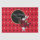 Festive birthday greeting features vintage illustration of the White Rabbit in red tinted Queen of Hearts garb with black and gold customizable text circle and red / gold / black diamond background