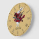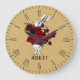 Vintage White Rabbit illustration from Alice in Wonderland decked out in red tinted Queen of Hearts garb with roman numeral clock face and customizable text