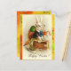 WHITE RABBIT TRAVELING WITH EASTER EGG HOLIDAY POSTCARD