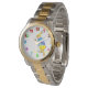 Very good quality watch that looks good whether dressing up or down. The band is sturdy. The watch is rather large so might not work for smaller folks. Recommended as a good gift. Printing is just a touch light but adds a nice touch of personalization.
