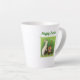 This Latte mug has a white rabbit pushing a wheelbarrow full of coloured eggs on a green background in a light green frame with the text A Joyous Easter. Customize the Happy Easter text at the top with the template.