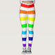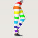 Multicoloured leggings with alternating rainbow and white horizontal stripes.