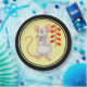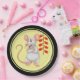 Chinese New Year plates for the year of the white rat with a cute white rat and firecrackers, yellow background, and black border.