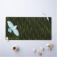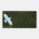 A white silhouette of a raven (Corvus corax) in flight superimposed on a green-toned fractal background closely resembling a conifer forest. Add your own text.