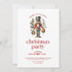 Christmas-themed Christmas party invite featuring Christmas Nutcracker and red retro typography. White background.