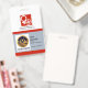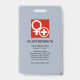 A white cover is accentuated by a red column (with an underlying light blue layer) near the base of the badge ; This light blue column houses a photo template for a photo size of 1,000 x 1,200 pix. Just beside the photo are your prestigious name, job title and employee ID. Over to the top of the badge is an optional red healthcare logo, followed by the organization's name and email contact.