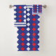 White Red Diamond Stripe Pattern Bath Towel Set. White Red Diamond Stripe Pattern on Blue Background.