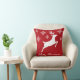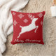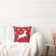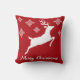 White Reindeer Silhouette On Red With Snowflakes Throw Pillow