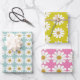 White Retro Modern Daisy Flower Pattern Custom Wrapping Paper Sheet