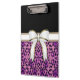 White Ribbon Bow with Purple Leopard Print Clipboard