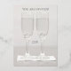 This elegant design features two sparkling wedding rings, each displayed in its own champagne flute, symbolizing two individuals who continue to celebrate life together. Silver foil accents add a luxurious, festive touch, perfect for honouring a quarter-century of love.