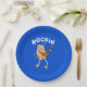 Rockin' in white text with a happy rock playing a guitar is a funny music design for musicians, students and teachers at birthdays and holidays.