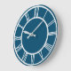 White Roman Numeral Pattern Border Ocean Blue RD Large Clock