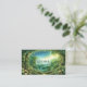 Define your brand with limitless imagination and vibrant natural beauty using this captivating business card. The design transports you to a magnificent, deep green forest valley, where dense, abundant foliage and towering trees frame the scene in a natural archway. The sky is an ethereal mix of bright blues and sunlight, dramatically highlighting a subtle crescent moon and hints of celestial glow. A peaceful river or stream flows through the valley, fed by a distant waterfall. The entire foreground is lavishly filled with abundant creamy white and pale yellow roses and wildflowers, creating a luminous, romantic border. This artwork merges rich, magical realism with vibrant natural detail, conveying a sense of serenity, renewal, and high-end elegance that makes your card truly unforgettable. This business card is ideally suited for a luxury event planner specializing in fairytale or garden-themed celebrations, a boutique hotelier wanting to convey a magnificent, picturesque setting, or a fine art photographer showcasing lush natural scenes. It would also perfectly suit a fantasy novelist or editor seeking distinctive, narrative-driven branding, or a modern landscape architect whose focus is on artistic, abundant garden design.