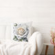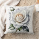 White Rose and rosebud, Silver Leaves Throw Pillow
