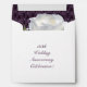 Elegantly beautiful and natural white roses in full bloom enhanced by a red-violet textured background embellish this wedding anniversary party envelope with customizable year and text. Original photography and design by Anura Design Studio.