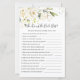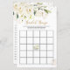 Watercolor white cream roses, gold floral and greenery foliage Bridal Shower Games - Double sided card - Two games in One! Bridal Shower Bingo Game in the front of card and Who Knows The Bride Best on the reverse.