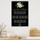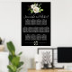 Elegant, keepsake seating chart. Beautiful and easy DIY wedding sign features a white rose posy at the top. At the bottom is a white rose wreath with your wedding date. The wedding couple names are written in a carefree script font. The white text and roses are stunning against the black background. Frame it (frames are available on Zazzle) to use at your reception - then take it home as a keepsake of those who attended your wedding. This seating chart is part of the Antique Roses collection that contains many DIY wedding templates to create a personalized wedding ceremony and reception. You should see a link to it on this page. If you don't or need help with an item, please contact me.